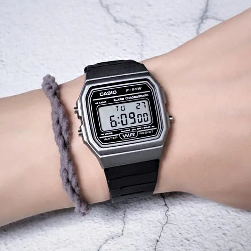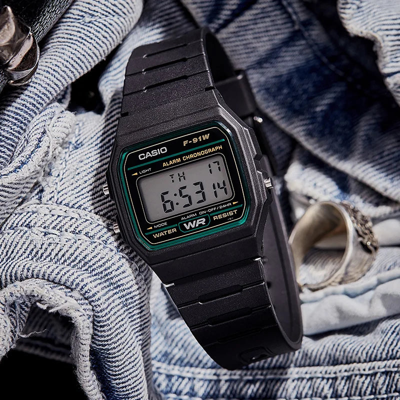 The Casio F-91W offers timeless design and reliable operation for a look and feel you can depend on. A true icon, this timepiece brings effortless style to any ensemble.