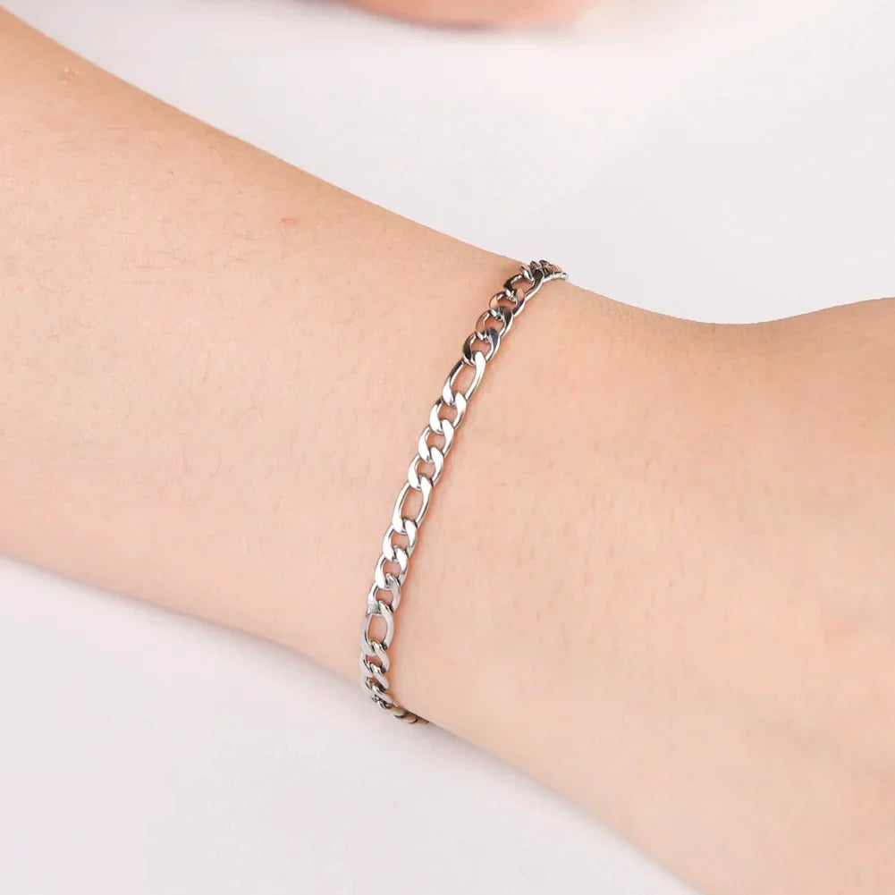 Indulge in classic elegance with our unisex Figaro Chain Bracelet. Crafted from high-quality stainless steel, this timeless piece exudes sophistication and luxury. Perfect for adding a touch of refined style to any outfit. Experience effortless elegance with our Classic Figaro Chain Bracelet.