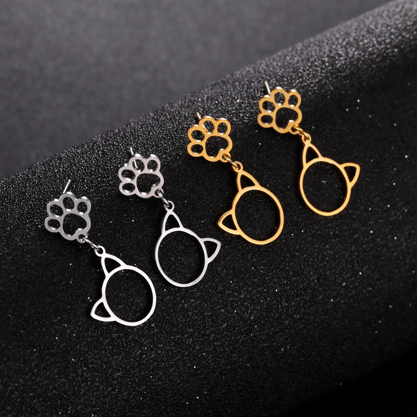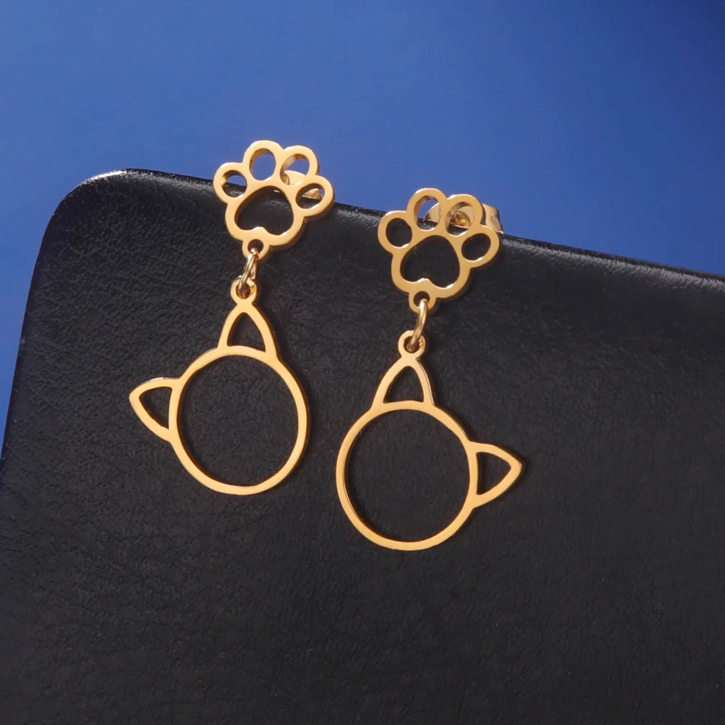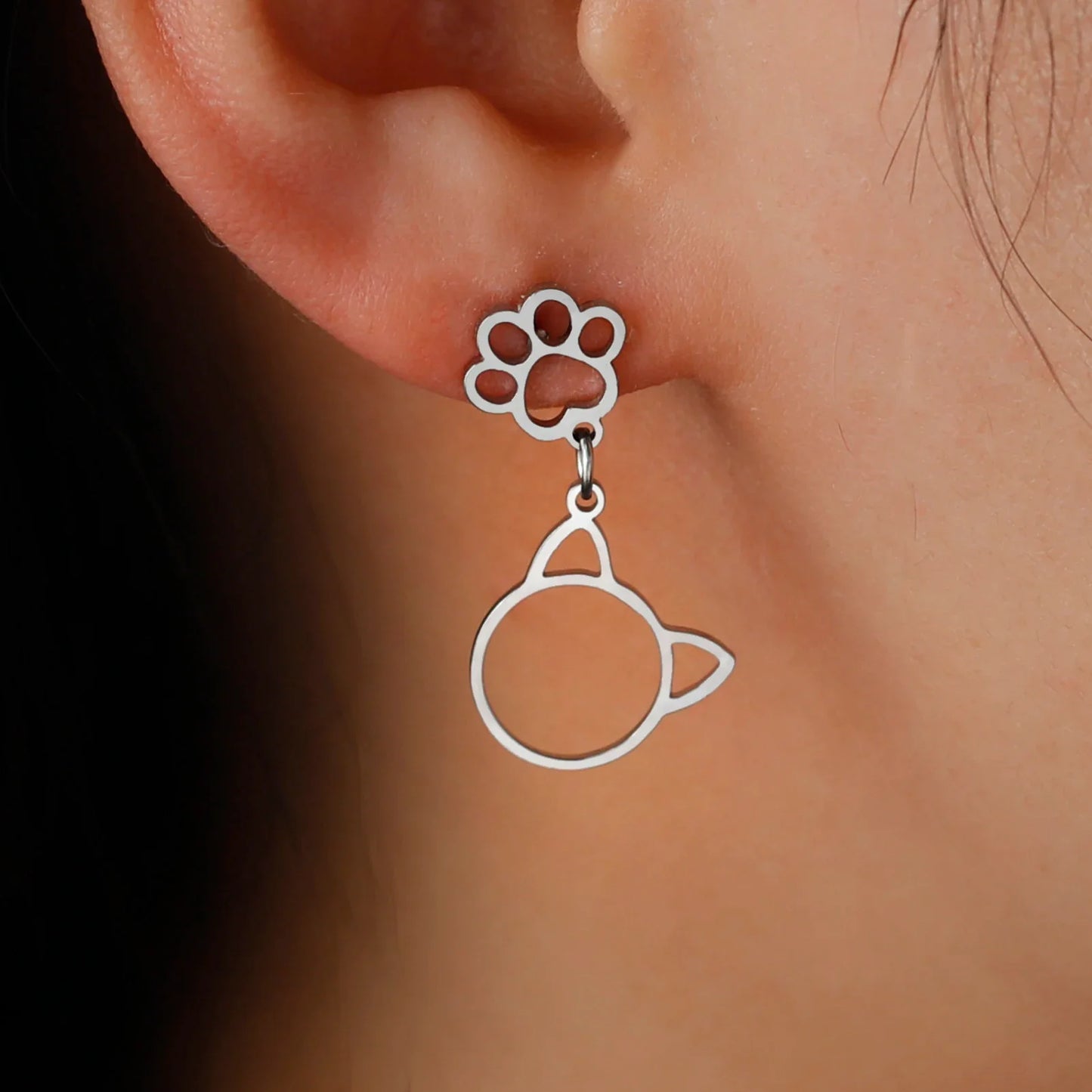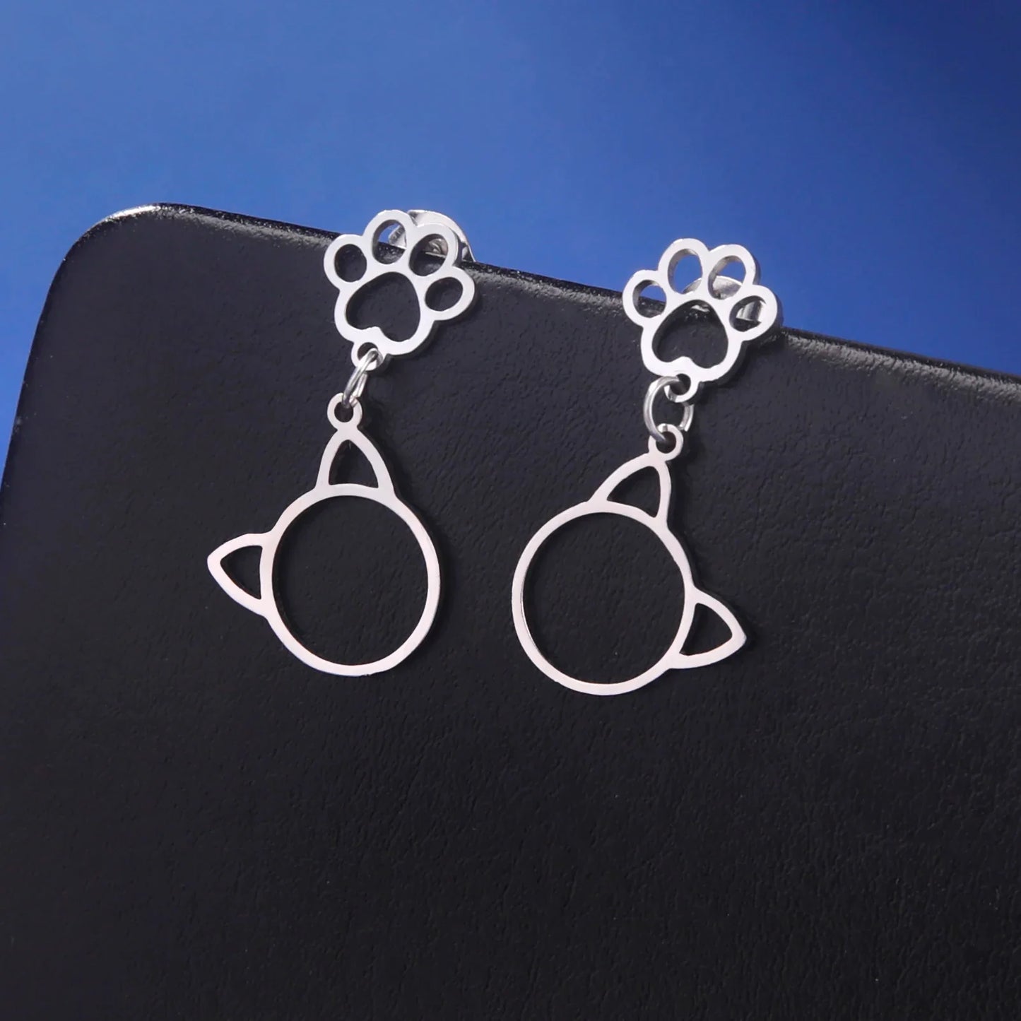 Indulge in the purrfect accessory with our Cute Cat Paw Drop Earrings. Made from high-quality stainless steel, these earrings feature an adorable chic design that will add a touch of sophistication to any outfit. Whether you're a cat lover or simply looking for a unique and elegant piece, these earrings are sure to impress.