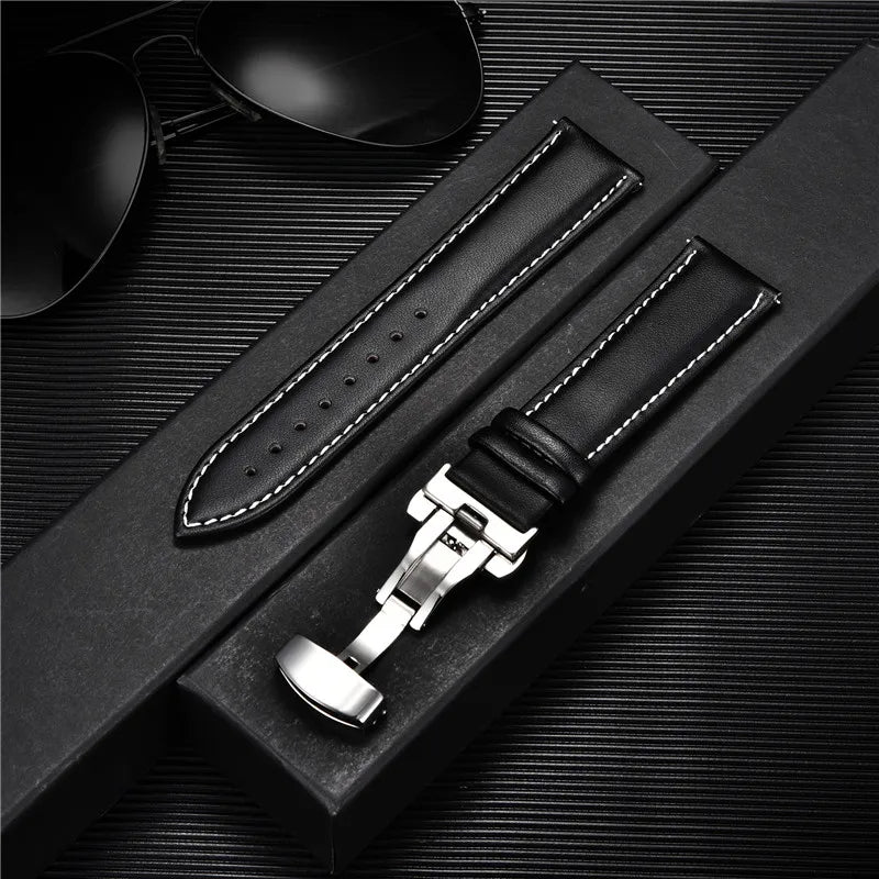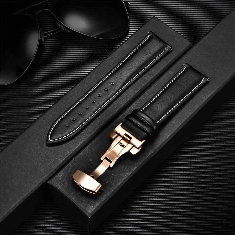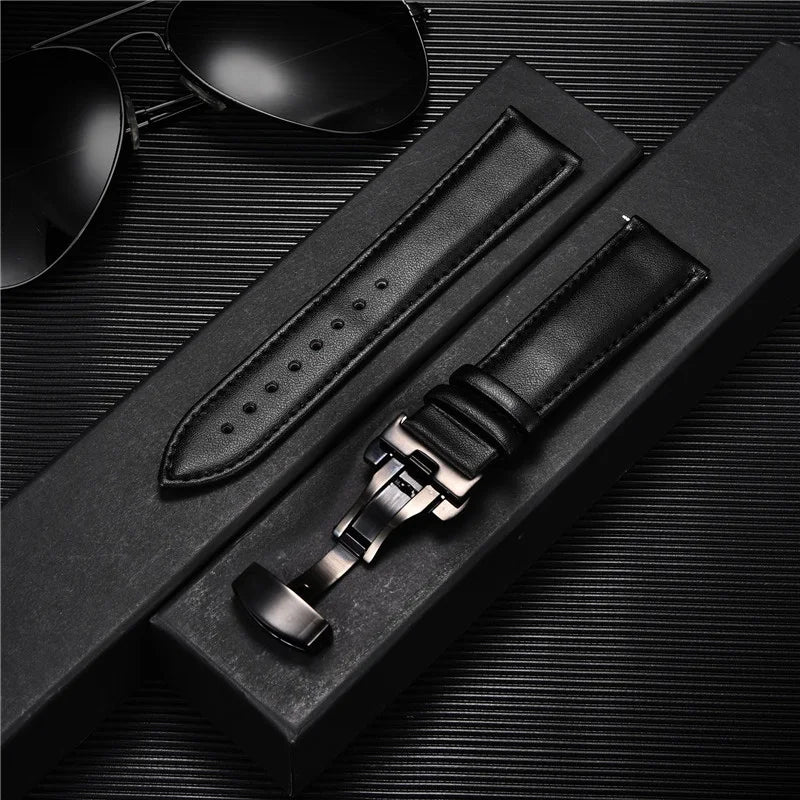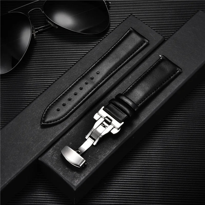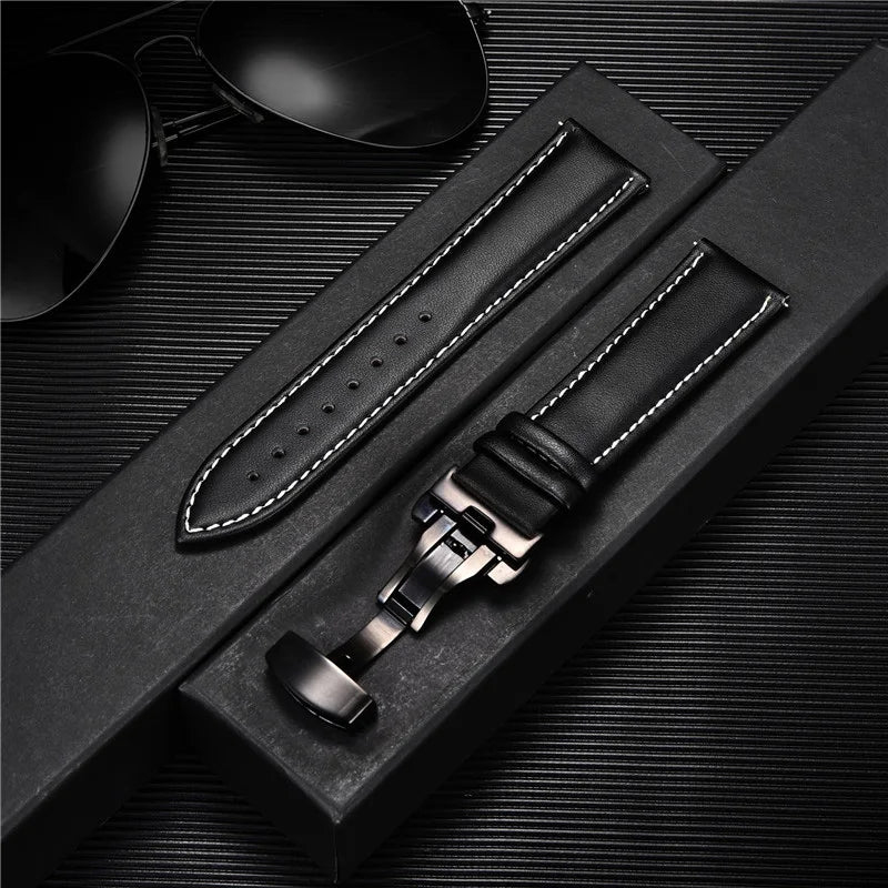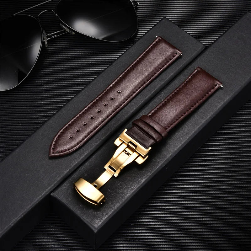 Genuine Calfskin Leather Watchband with Butterfly Buckle
