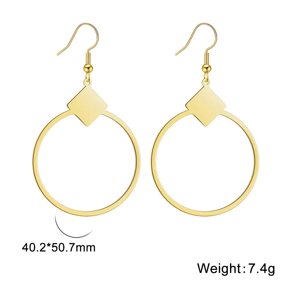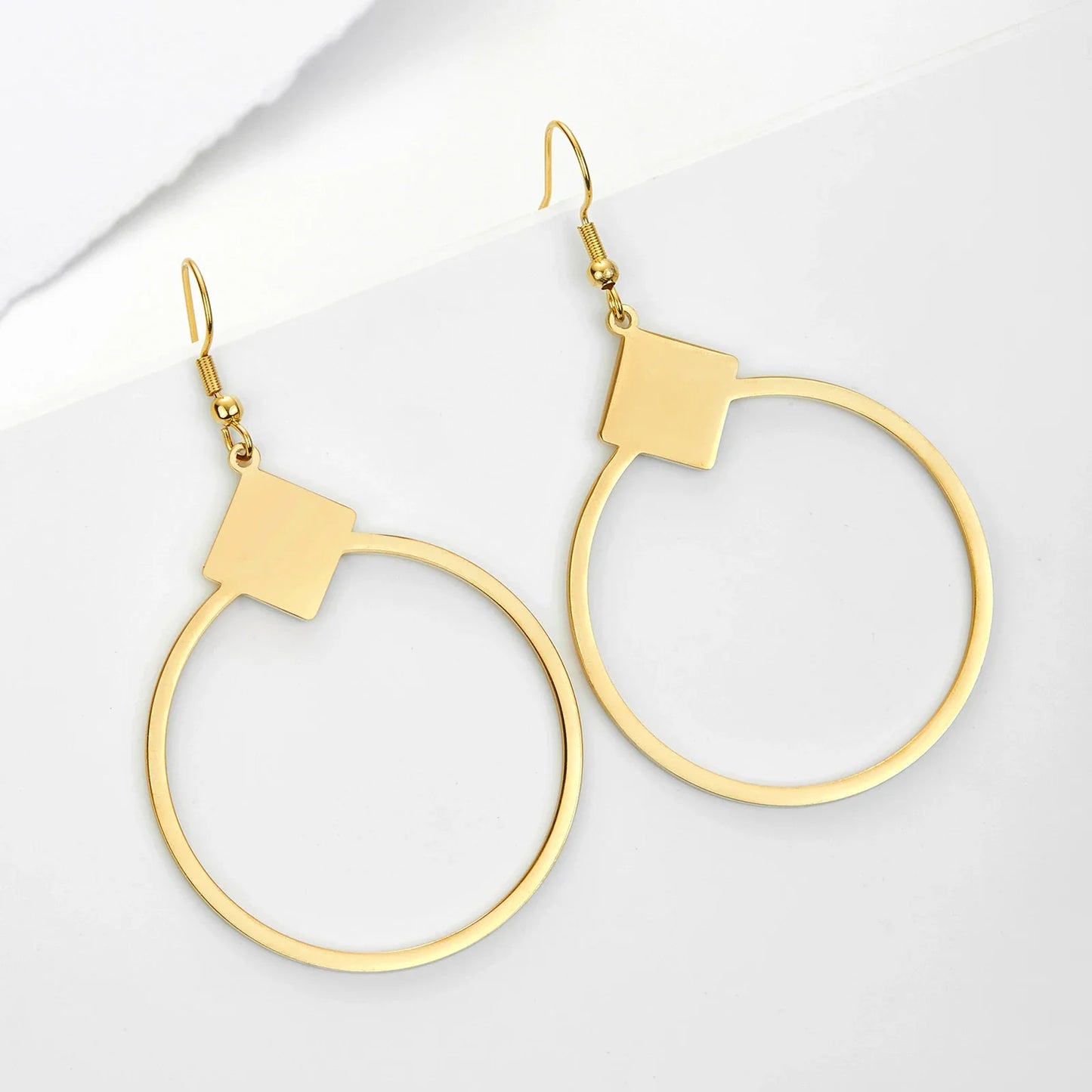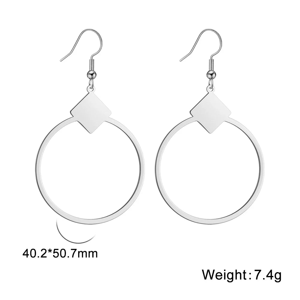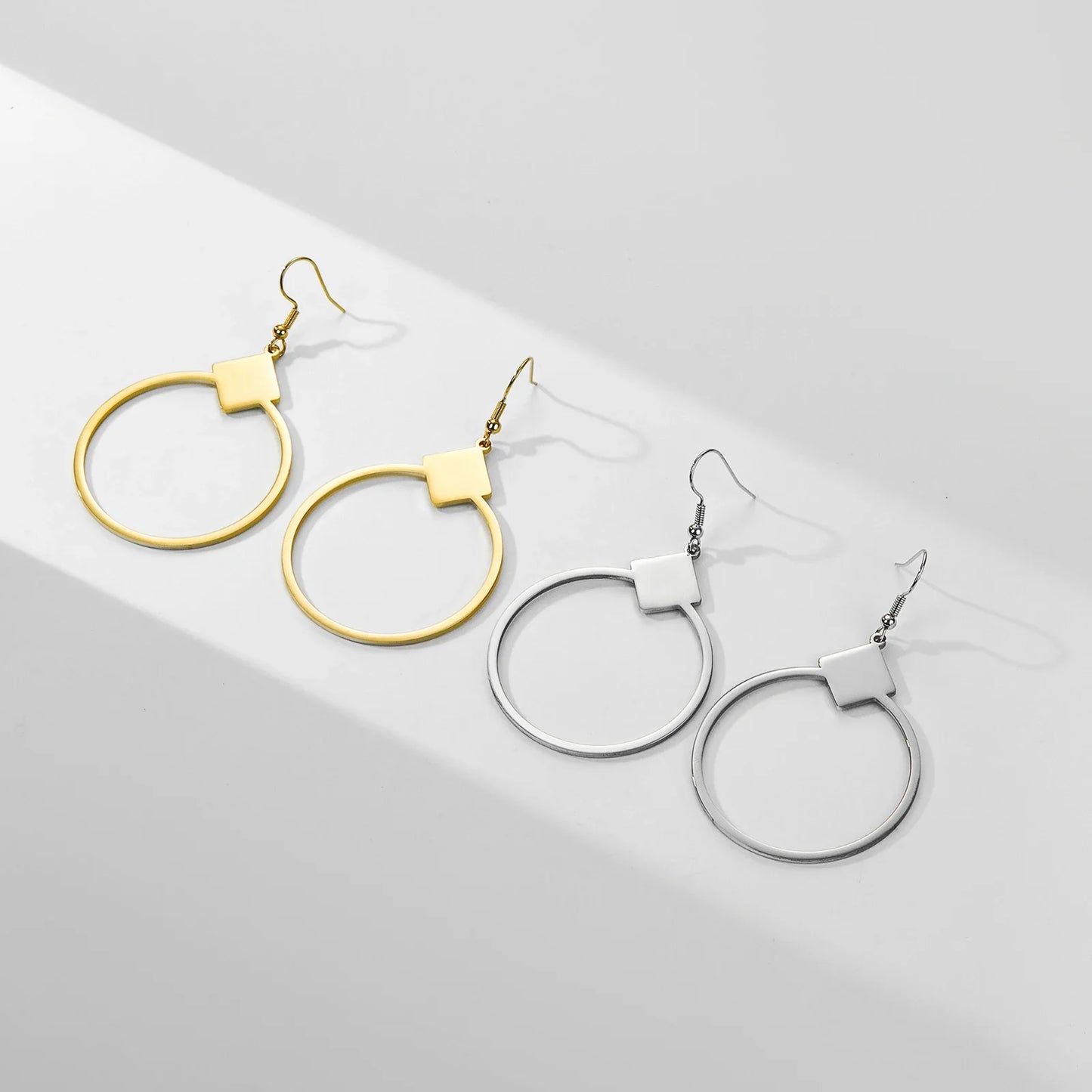 Enhance your look with these sophisticated Large Circle Square Minimalist Korean Drop Earrings. Crafted from premium stainless steel, these earrings exude elegance and luxury. Elevate any outfit with this tasteful, exclusive accessory.