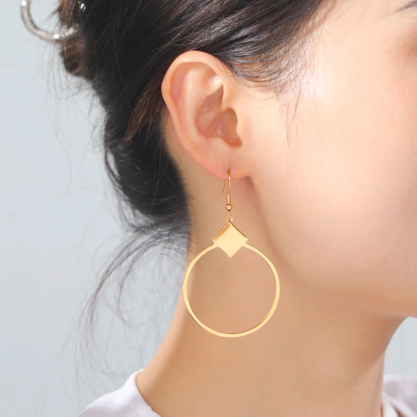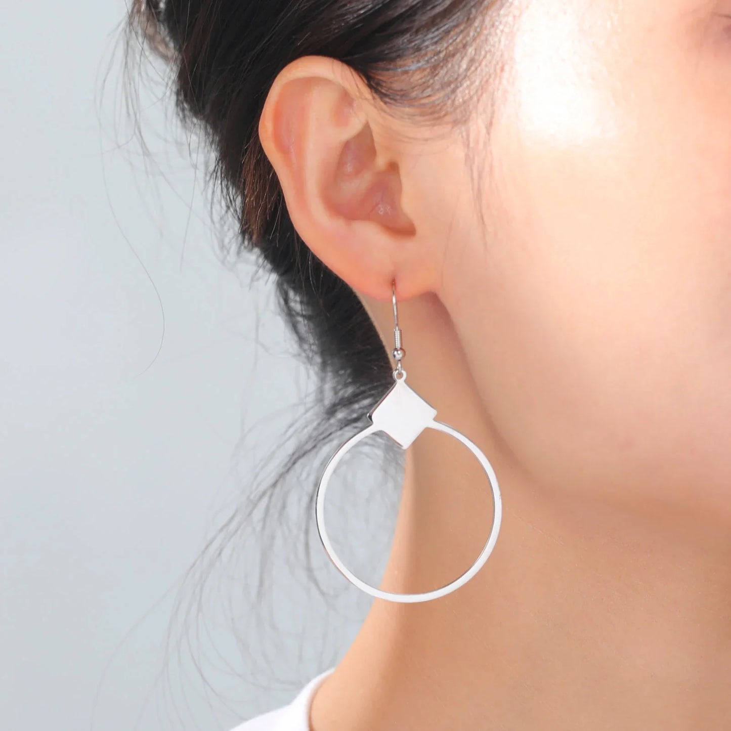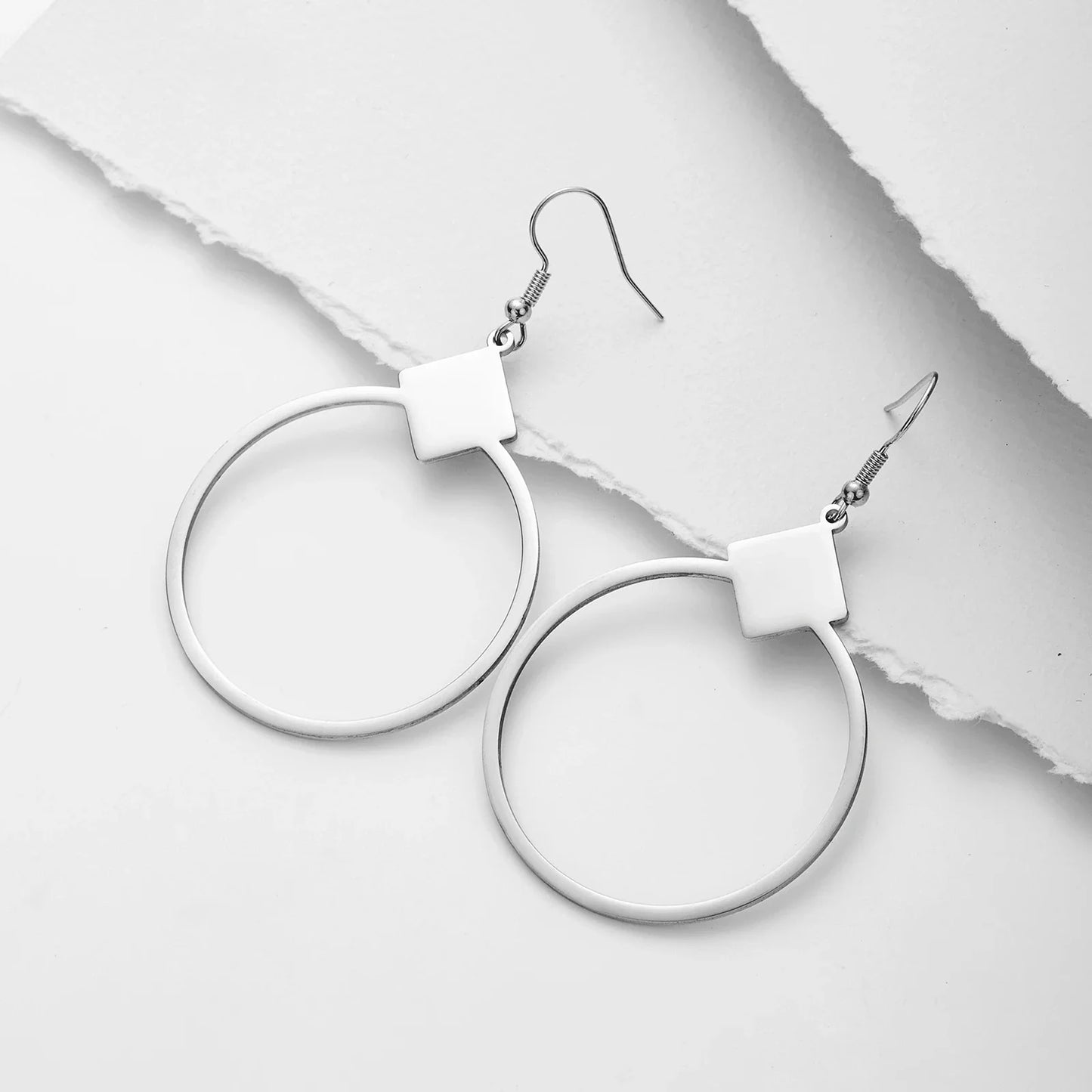 Enhance your look with these sophisticated Large Circle Square Minimalist Korean Drop Earrings. Crafted from premium stainless steel, these earrings exude elegance and luxury. Elevate any outfit with this tasteful, exclusive accessory.