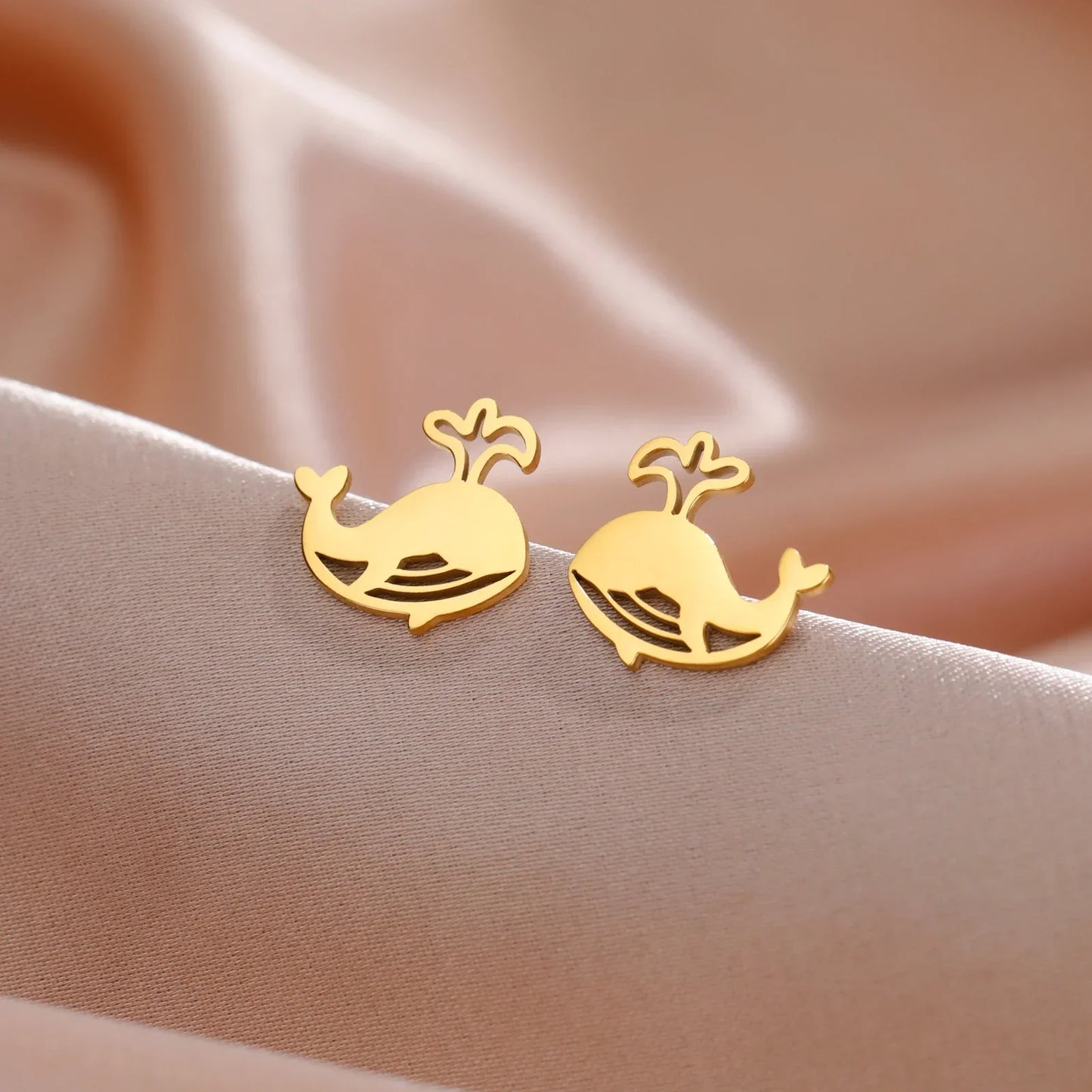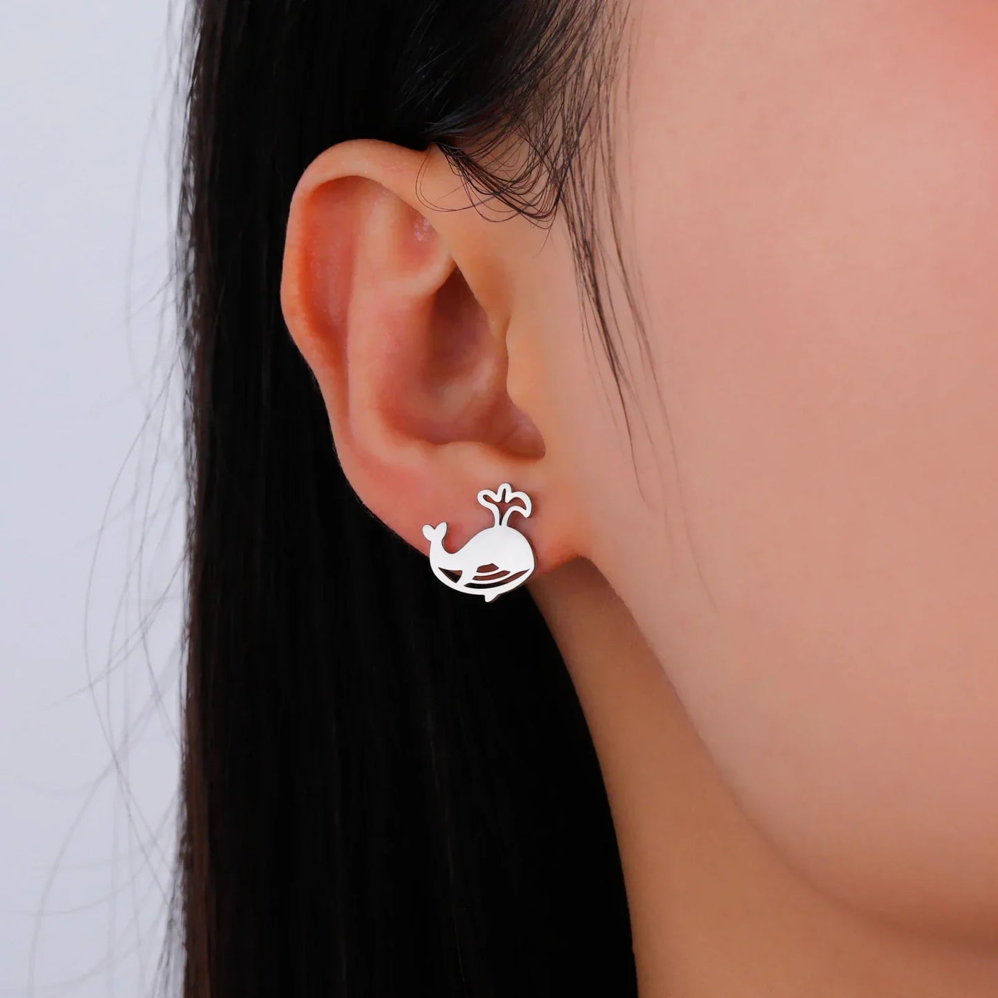 Make a statement with these Little Whale Stud Earrings. Crafted from durable stainless steel with a cute and chic design, these earrings are perfect for adding a touch of sophistication to any outfit. Elevate your style with these exclusive earrings that are sure to catch attention.