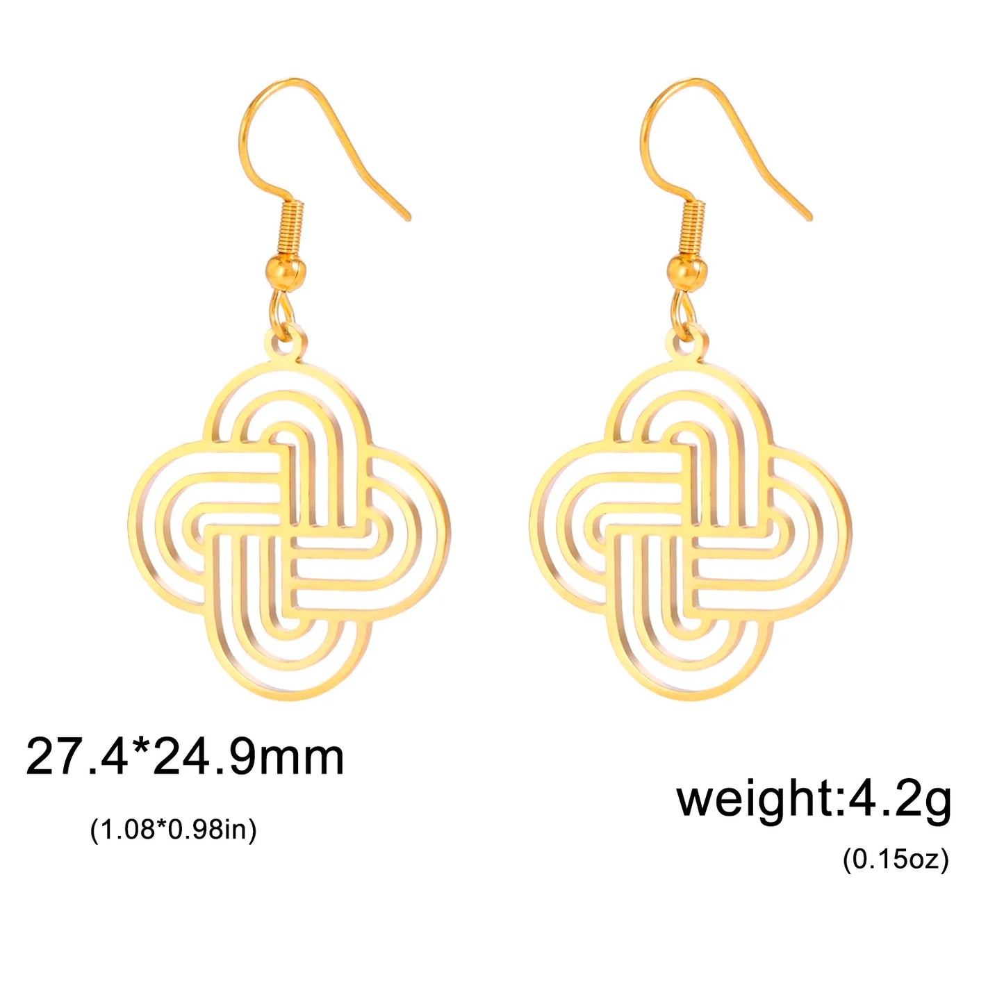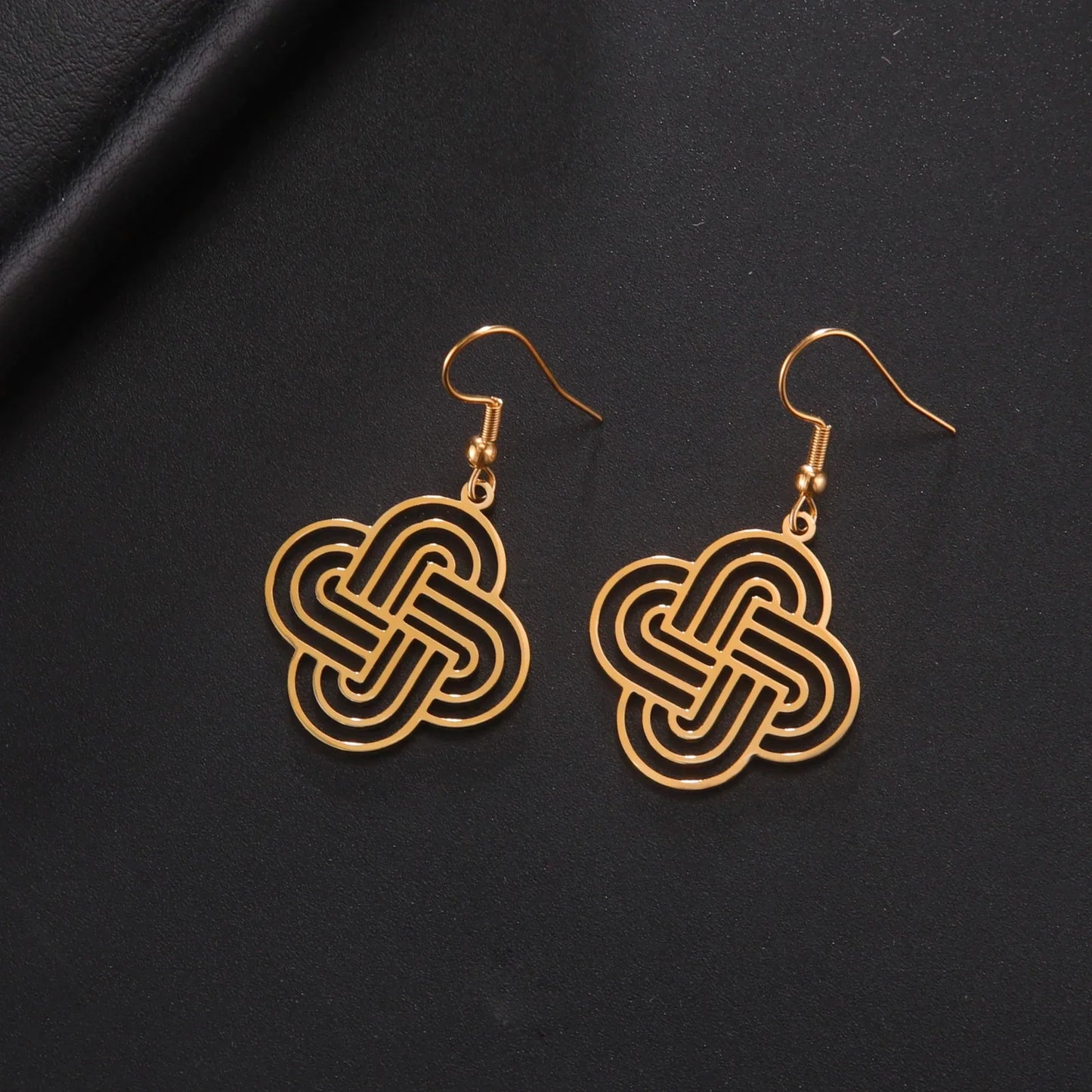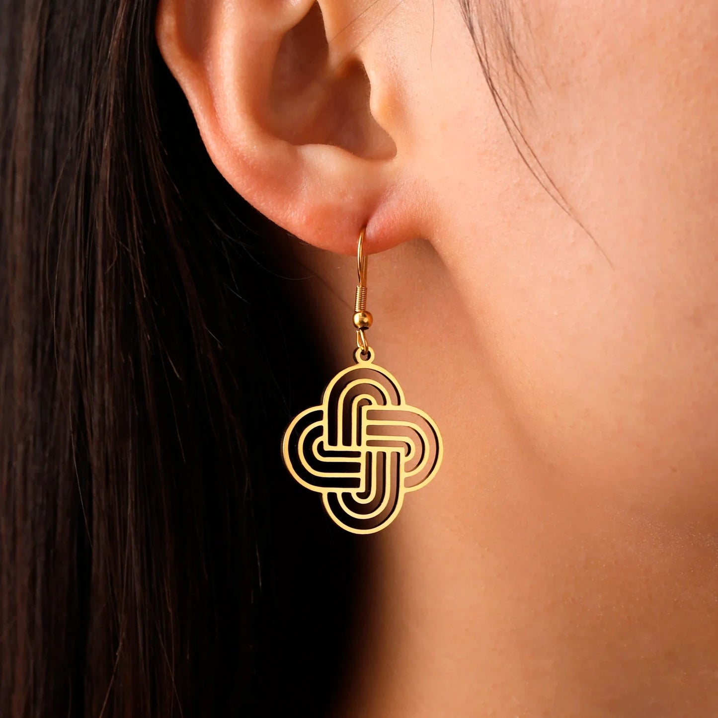 Elevate your jewelry collection with our Lovers Loop Drop Earrings. Crafted from stainless steel, these earrings feature a guilloche design inspired by Solomon's Knot. This ancient symbol of eternity is a beautiful representation of lasting love. Make a statement with these timeless and elegant earrings.
