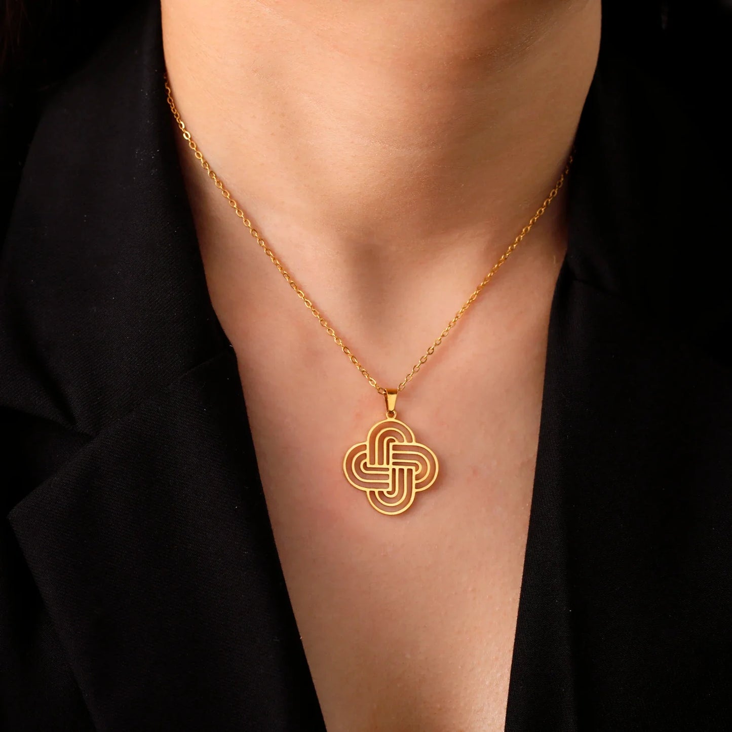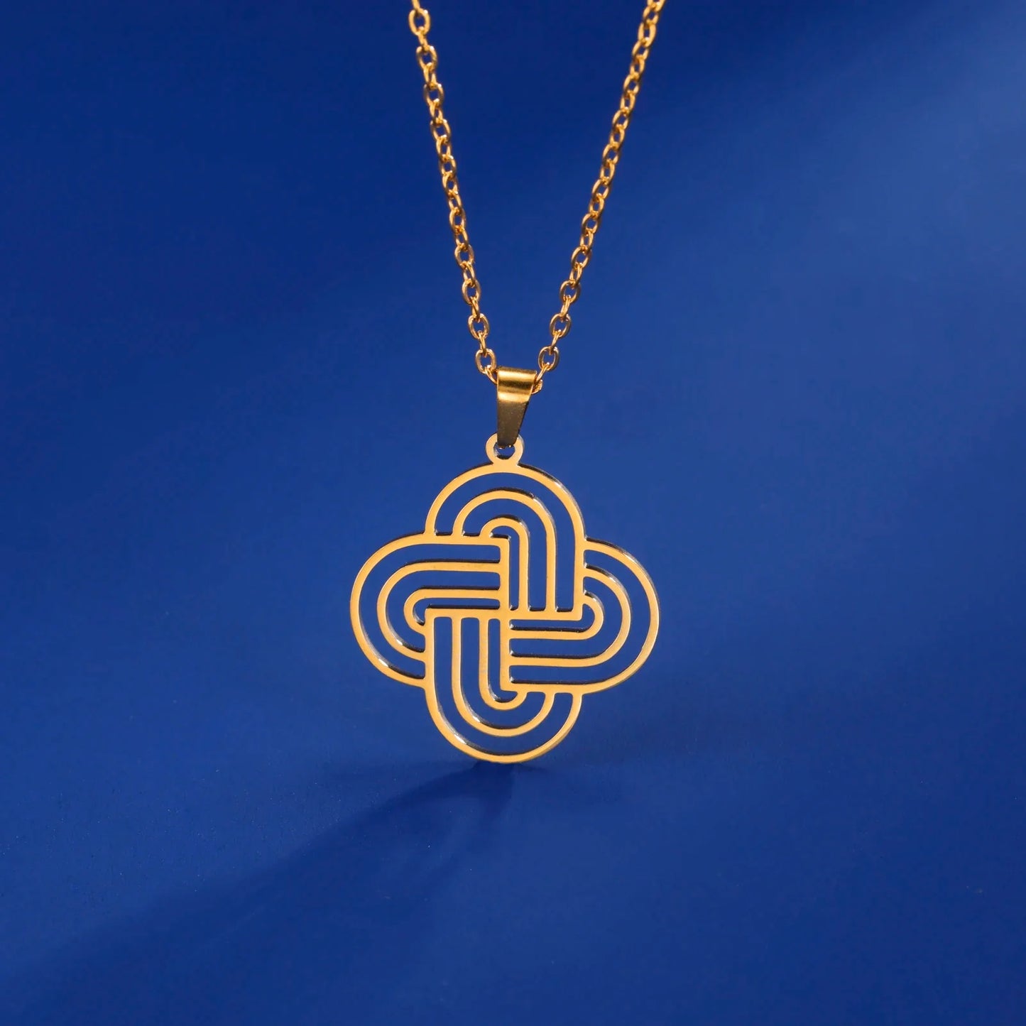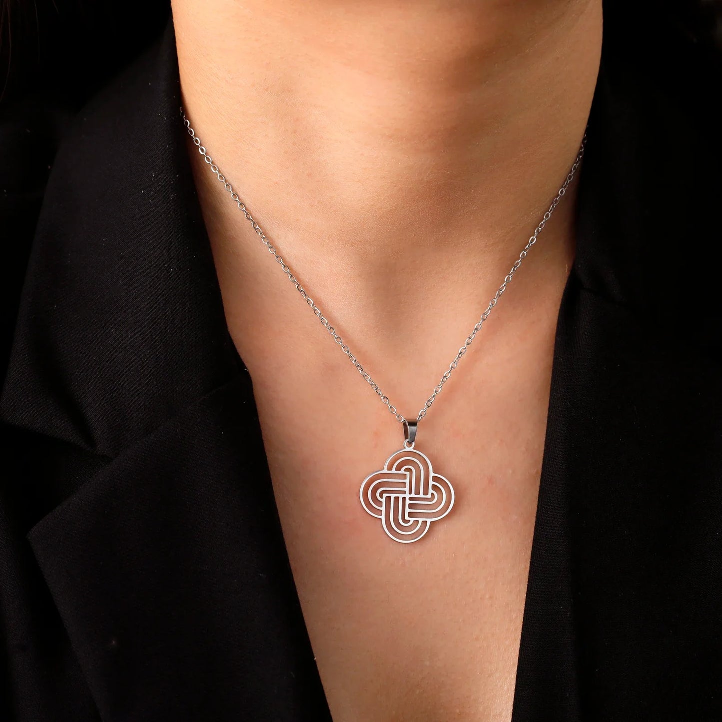 Wrap yourself in eternal love with our Lovers Loop Pendant Necklace. This exquisite piece features the Solomon's Knot symbol, representing everlasting love and connection. Made with high-quality stainless steel, this necklace is a timeless and luxurious addition to any outfit. Share your love story with this elegant and exclusive necklace.