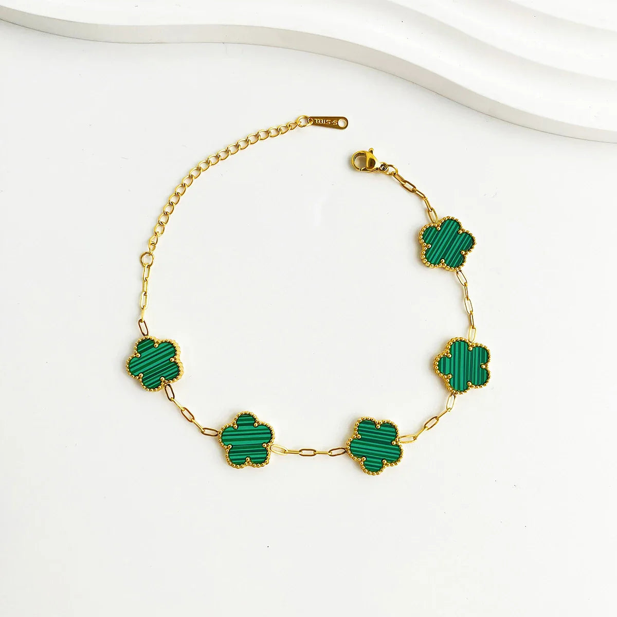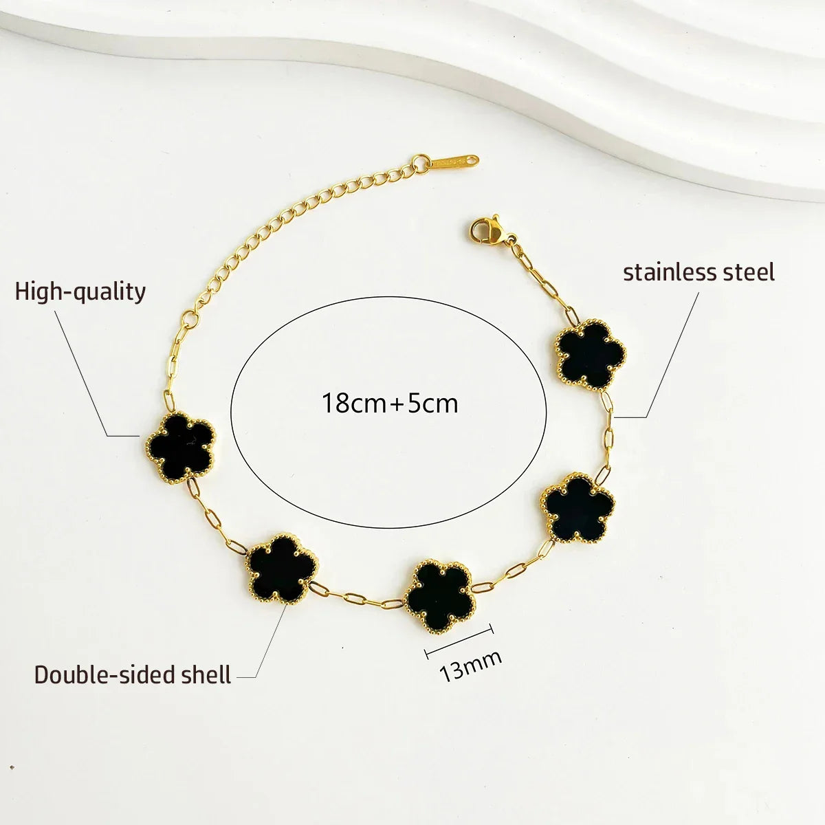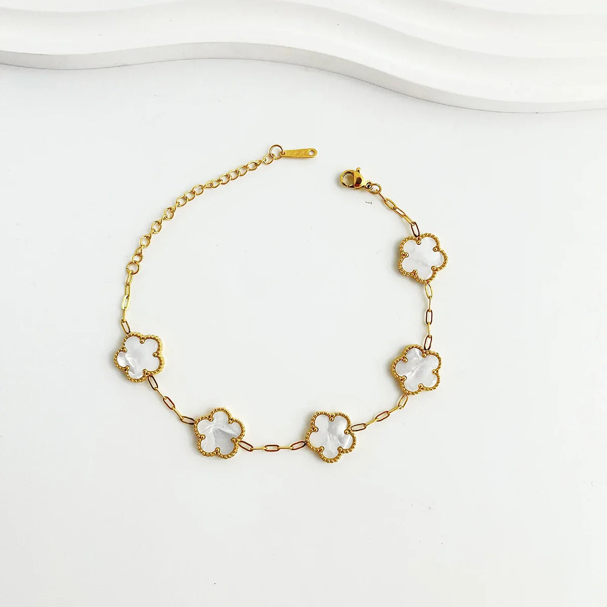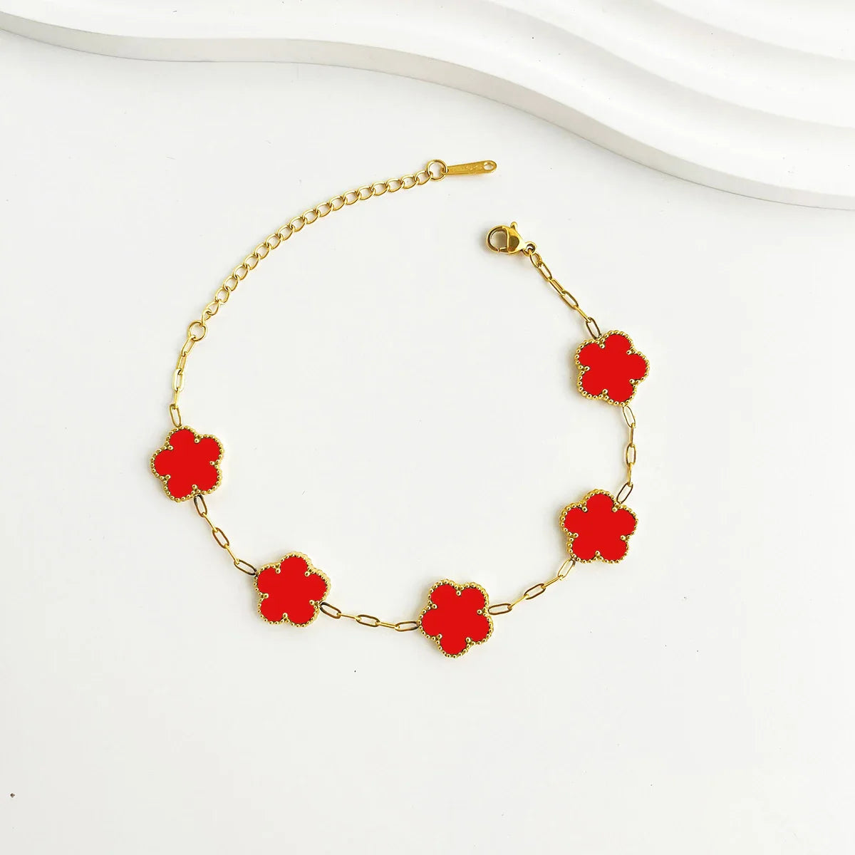 Indulge in the ultimate statement piece with our Luxury Clover Charm Bracelets. With paper clip links and luxurious flower charms, this gold plated stainless steel bracelet exudes elegance and sophistication. Elevate any outfit with the perfect touch of luxury.