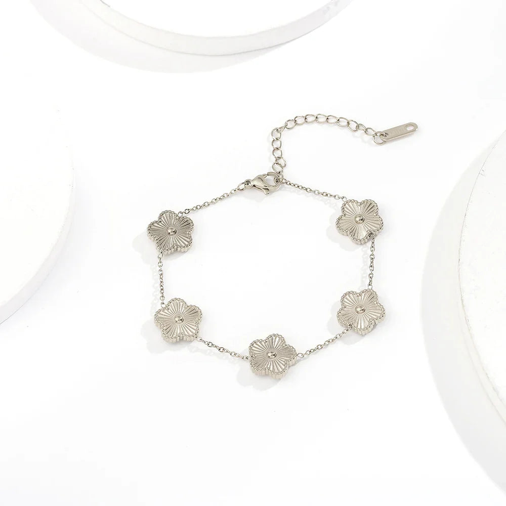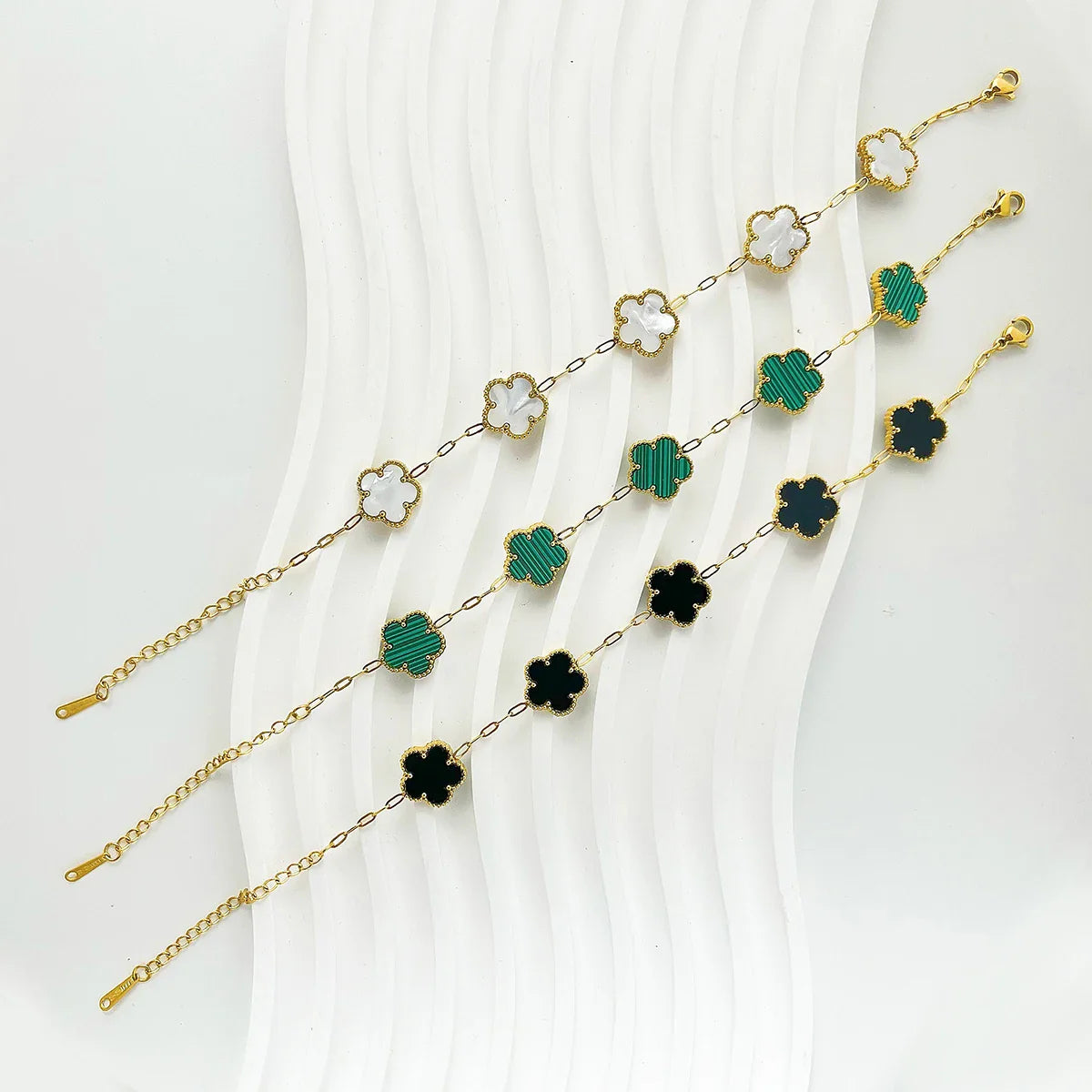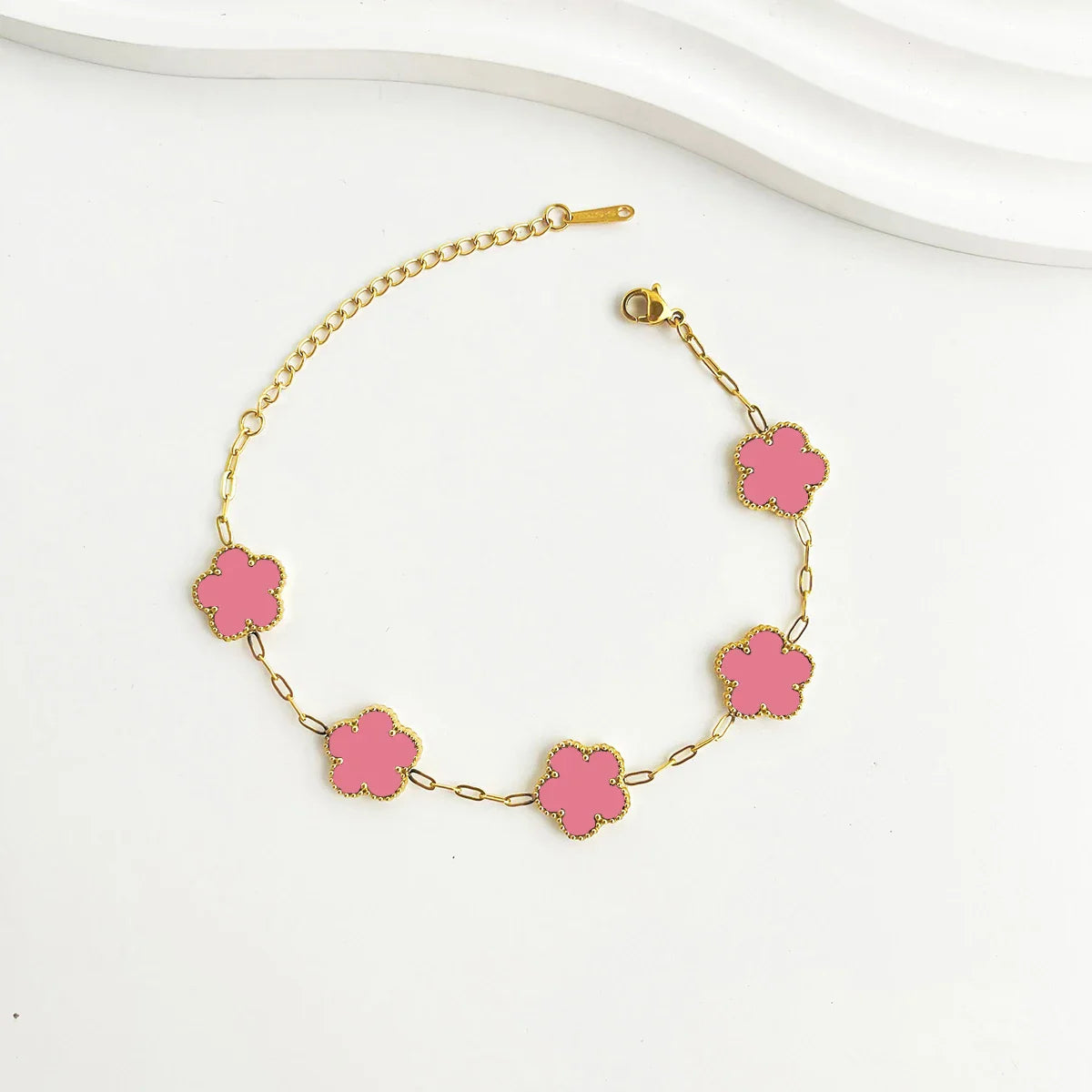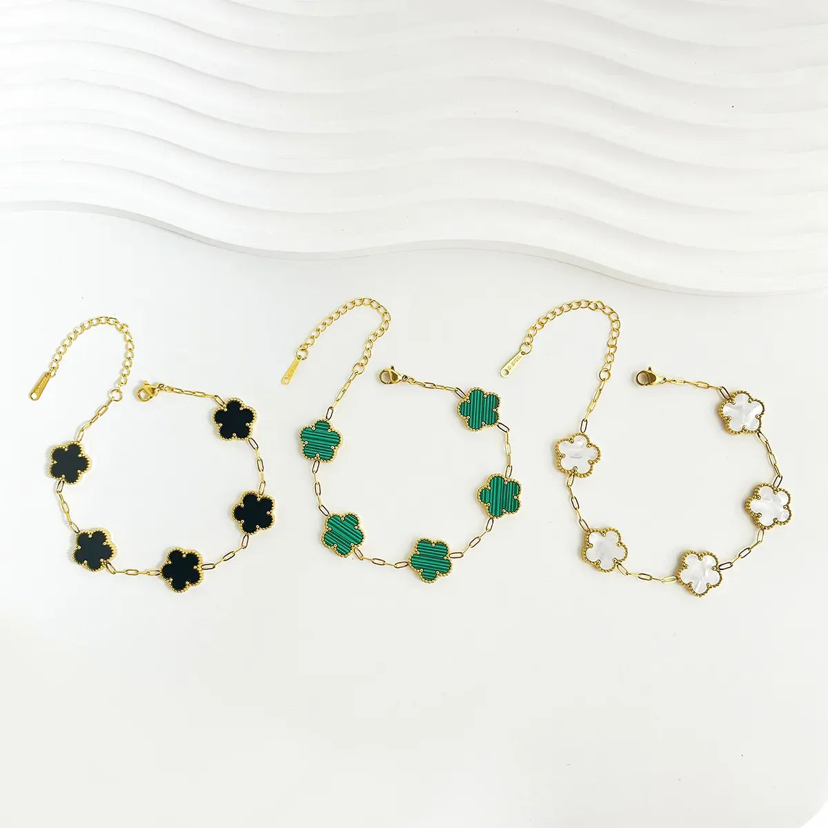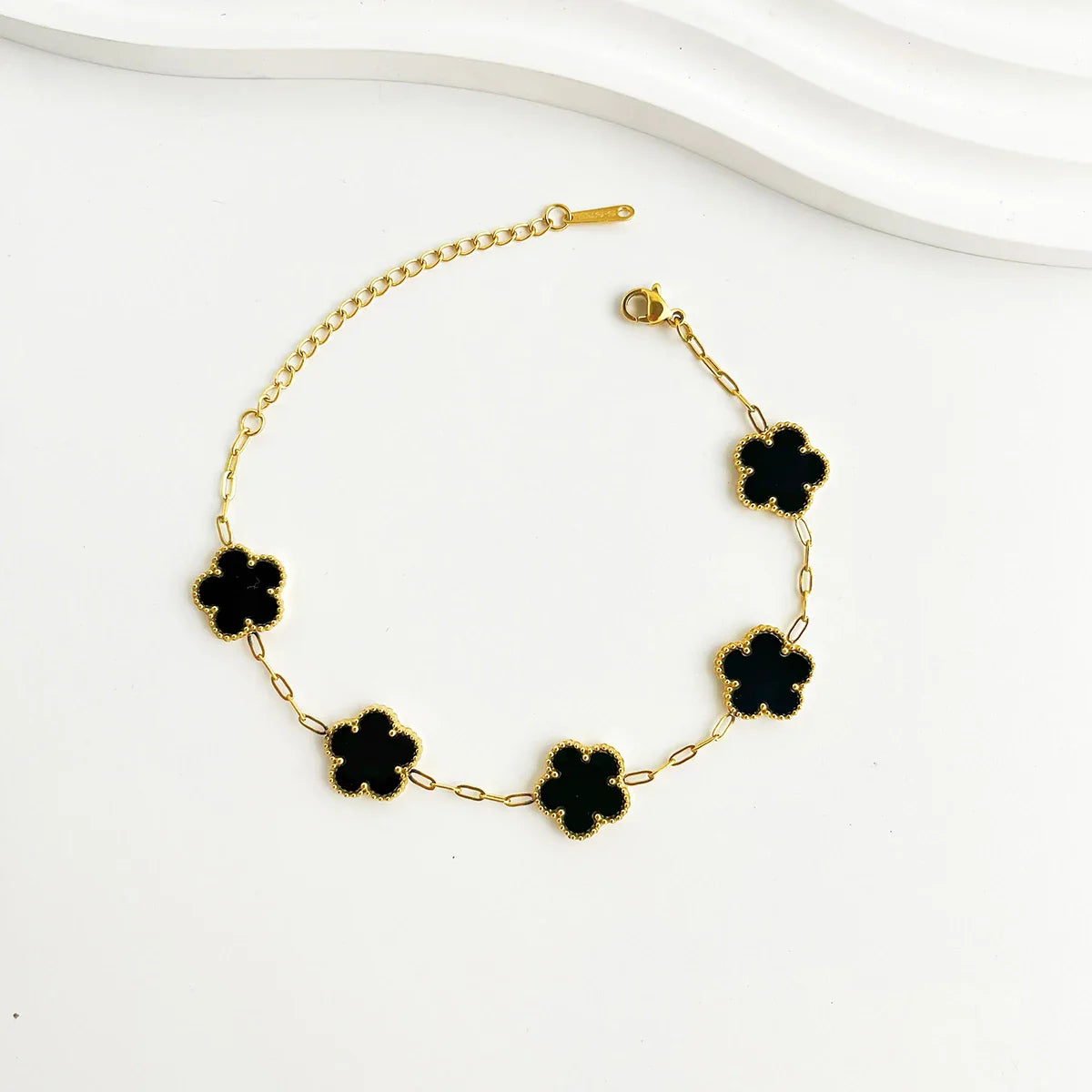 Indulge in the ultimate statement piece with our Luxury Clover Charm Bracelets. With paper clip links and luxurious flower charms, this gold plated stainless steel bracelet exudes elegance and sophistication. Elevate any outfit with the perfect touch of luxury.