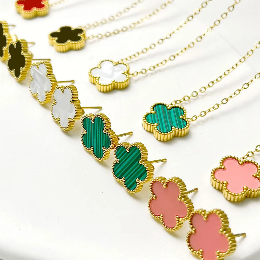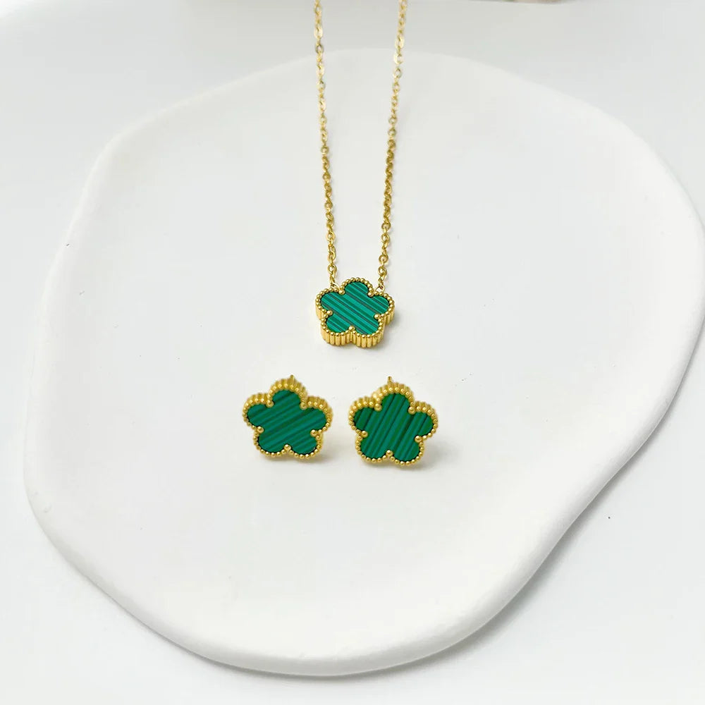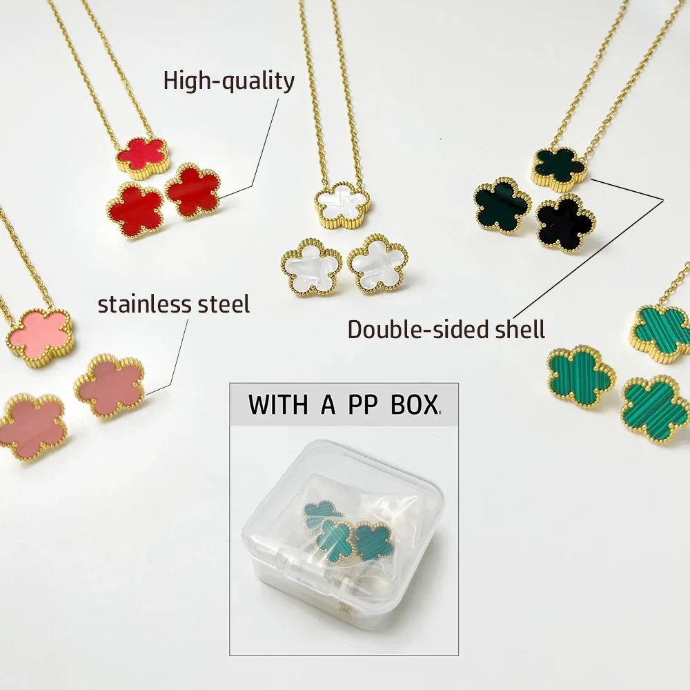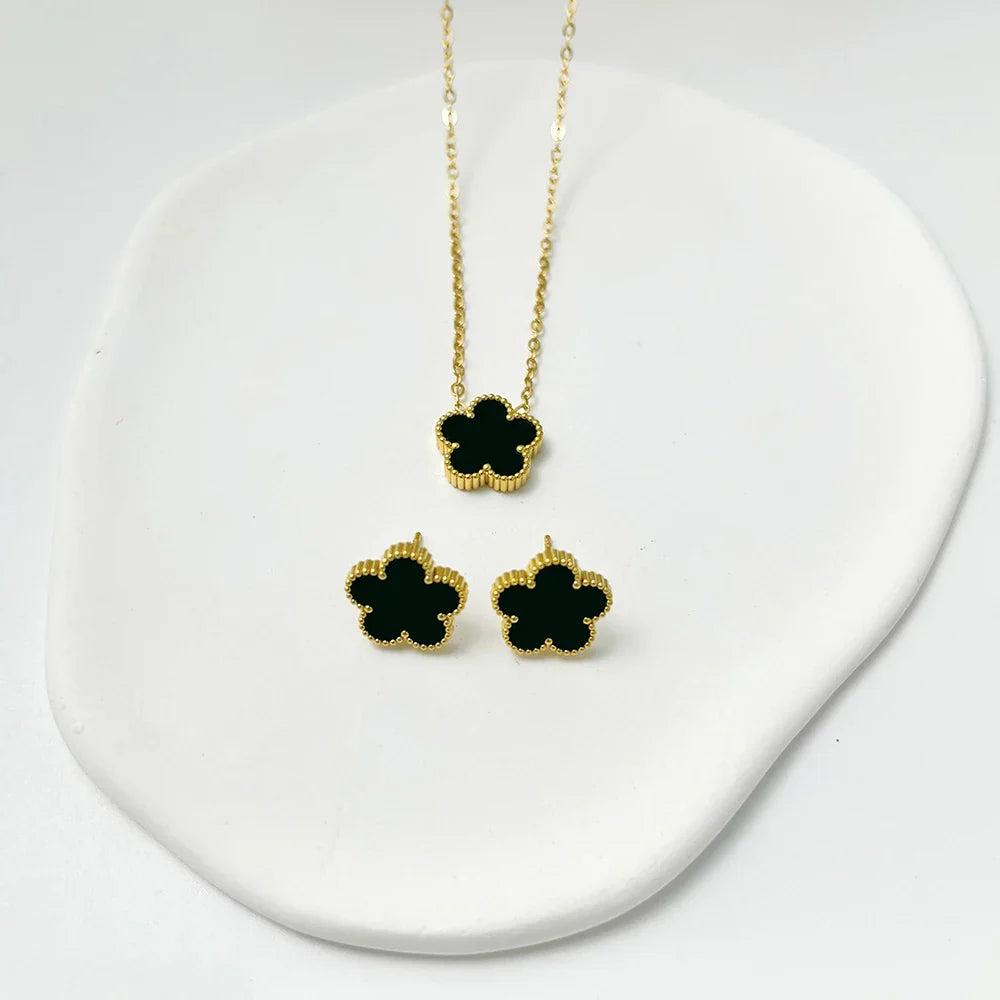 Luxury Flower Charm Pendant Necklace and Earrings Set