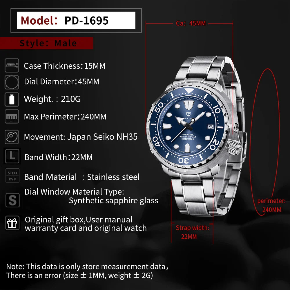 PAGANI DESIGN PD-1695 Professional Diver Automatic Watch Men's
