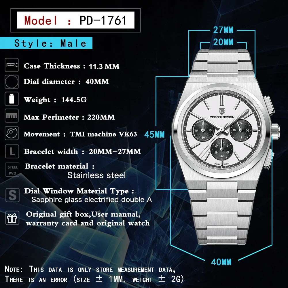 PAGANI DESIGN PD-1761 PDRX Quartz Chronograph Sport Watch for Men