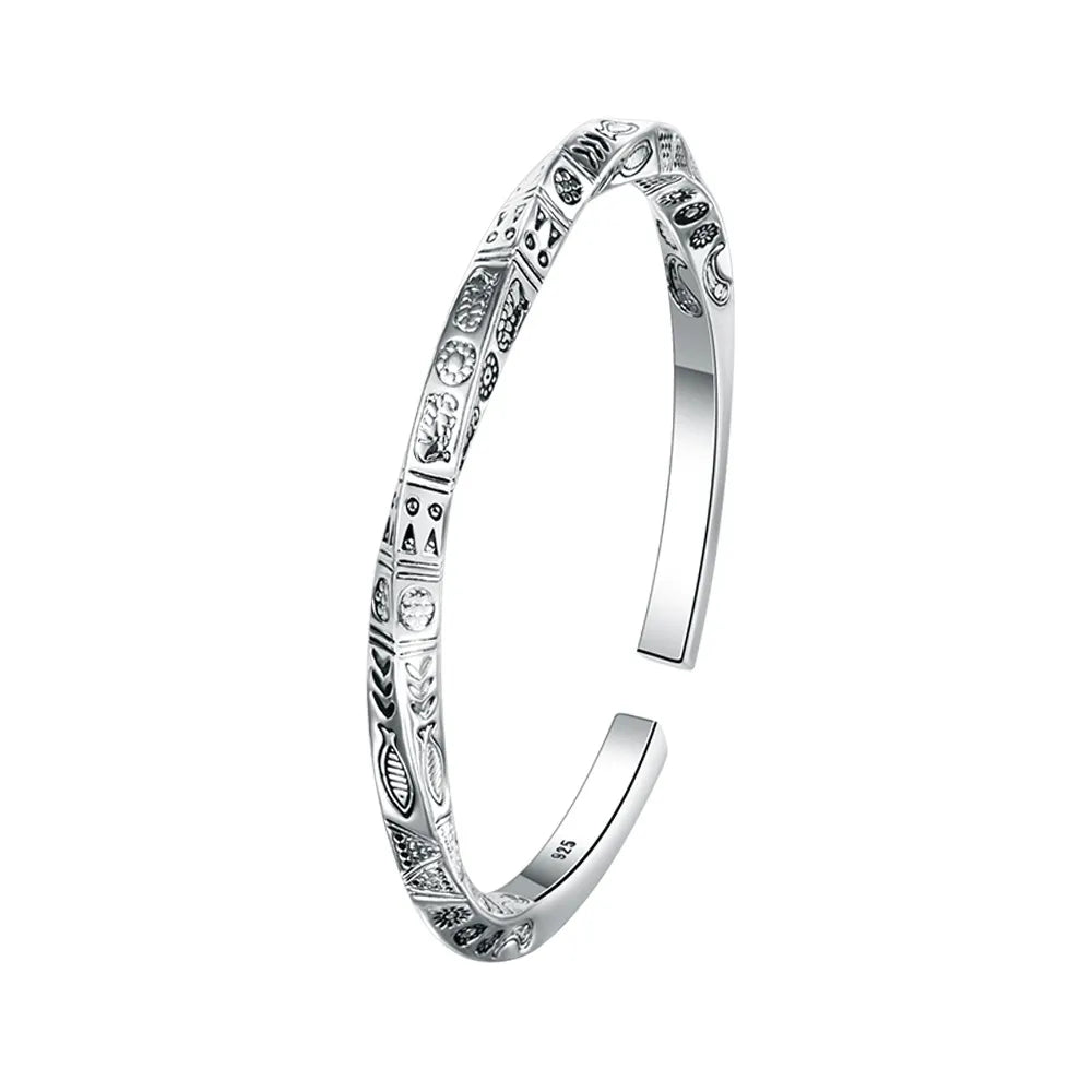 Silver Nordic Carved Bracelet for Her