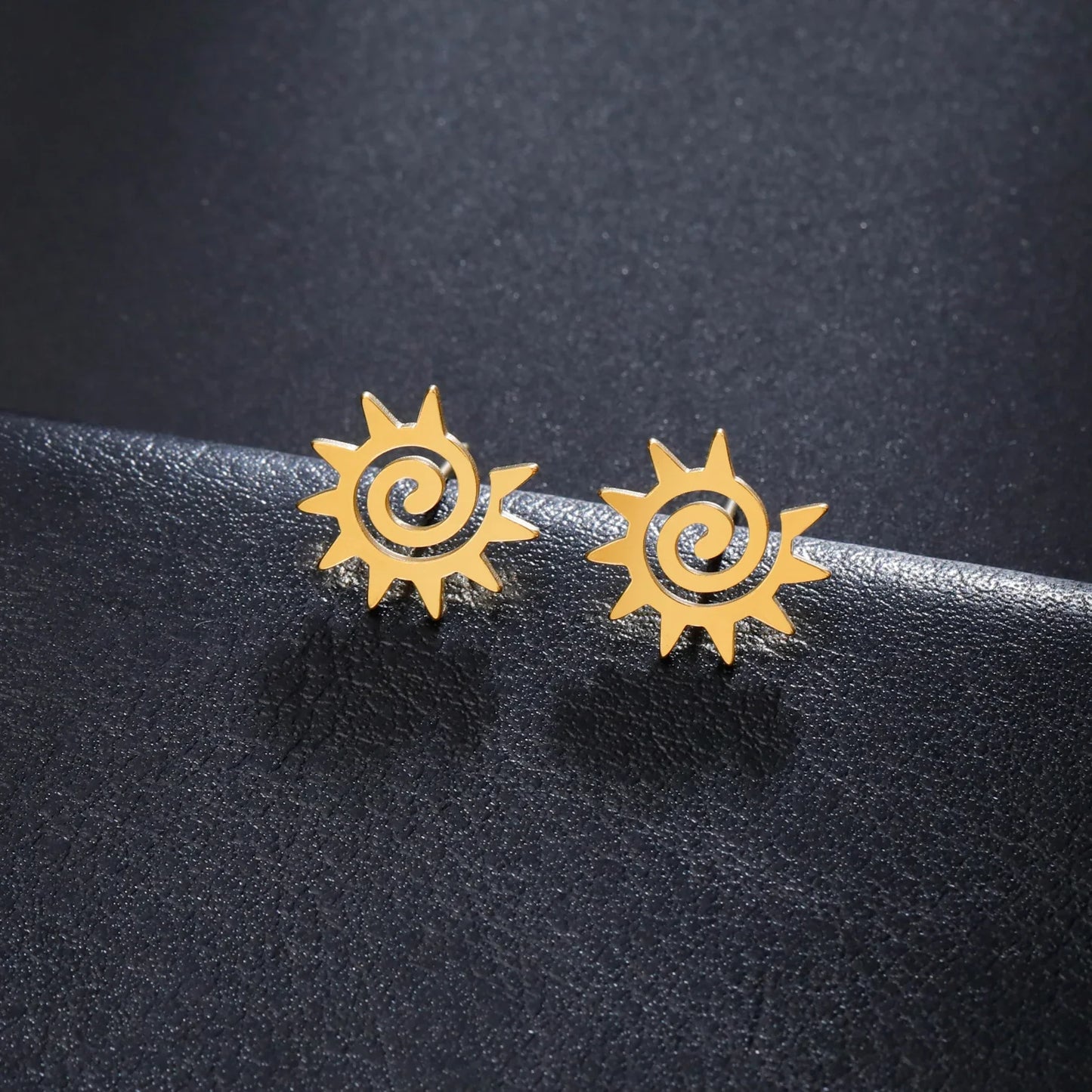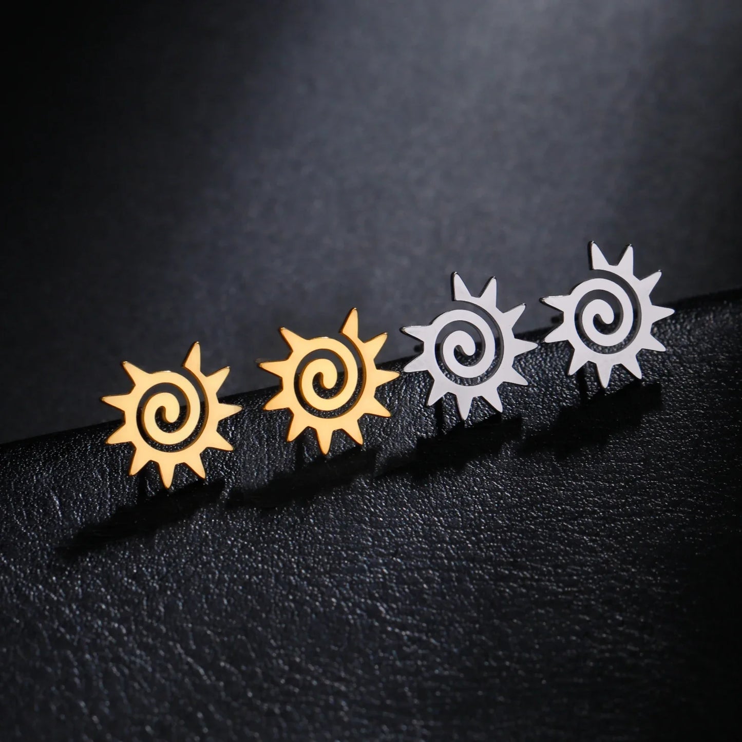 Elevate your style with our chic and adorable Spiral Sun Stud Earrings. Made from high-quality stainless steel, these earrings add a touch of sophistication to any outfit. Embrace a look that's both cute and luxurious.