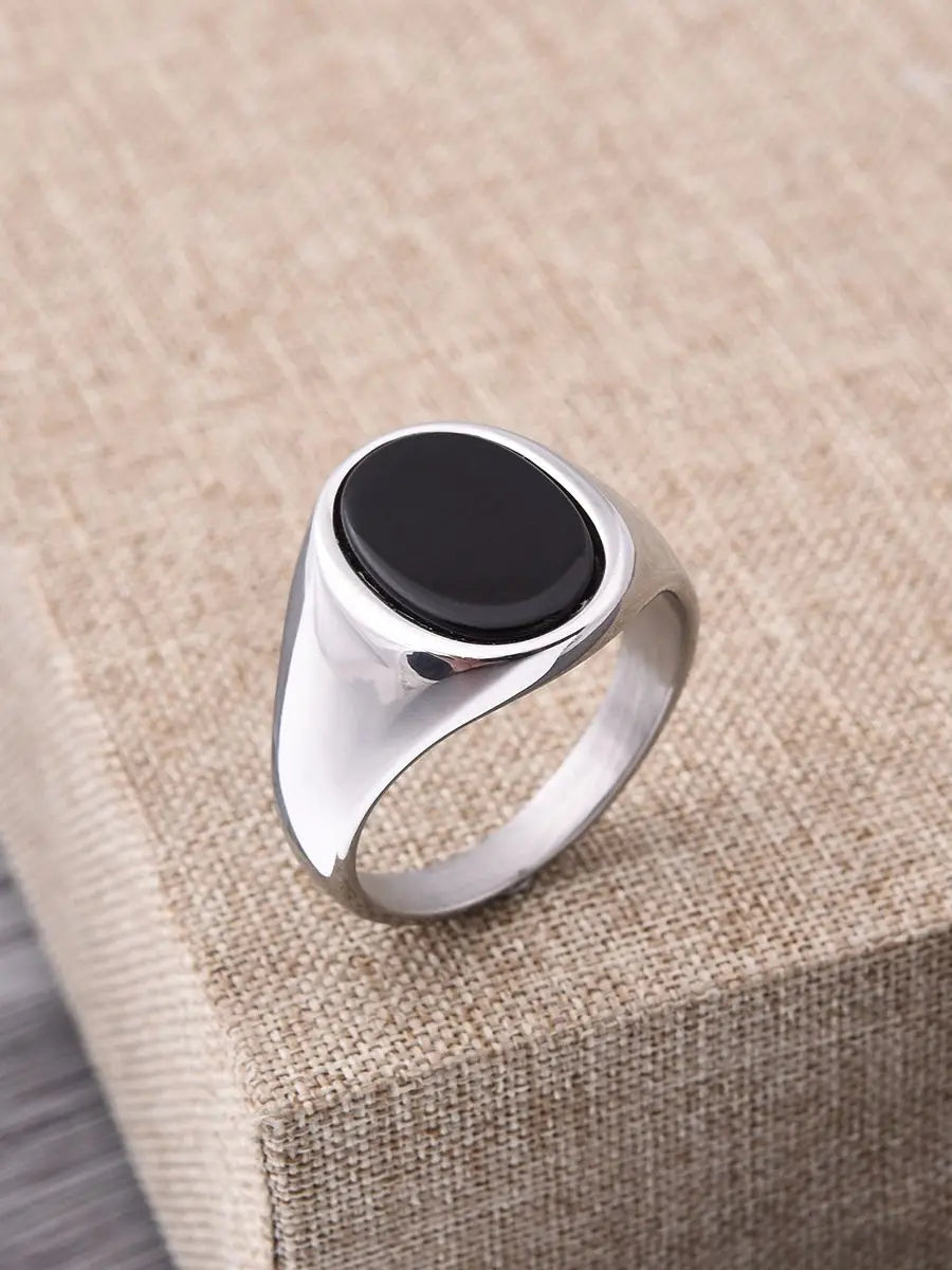 Indulge in luxury with our Vintage Silver Oval Stone Inlay Ring. Crafted with natural stone and durable stainless steel, this unisex ring exudes timeless elegance. Perfect for any occasion, it adds a touch of sophistication to any outfit. Elevate your style with this must-have accessory.