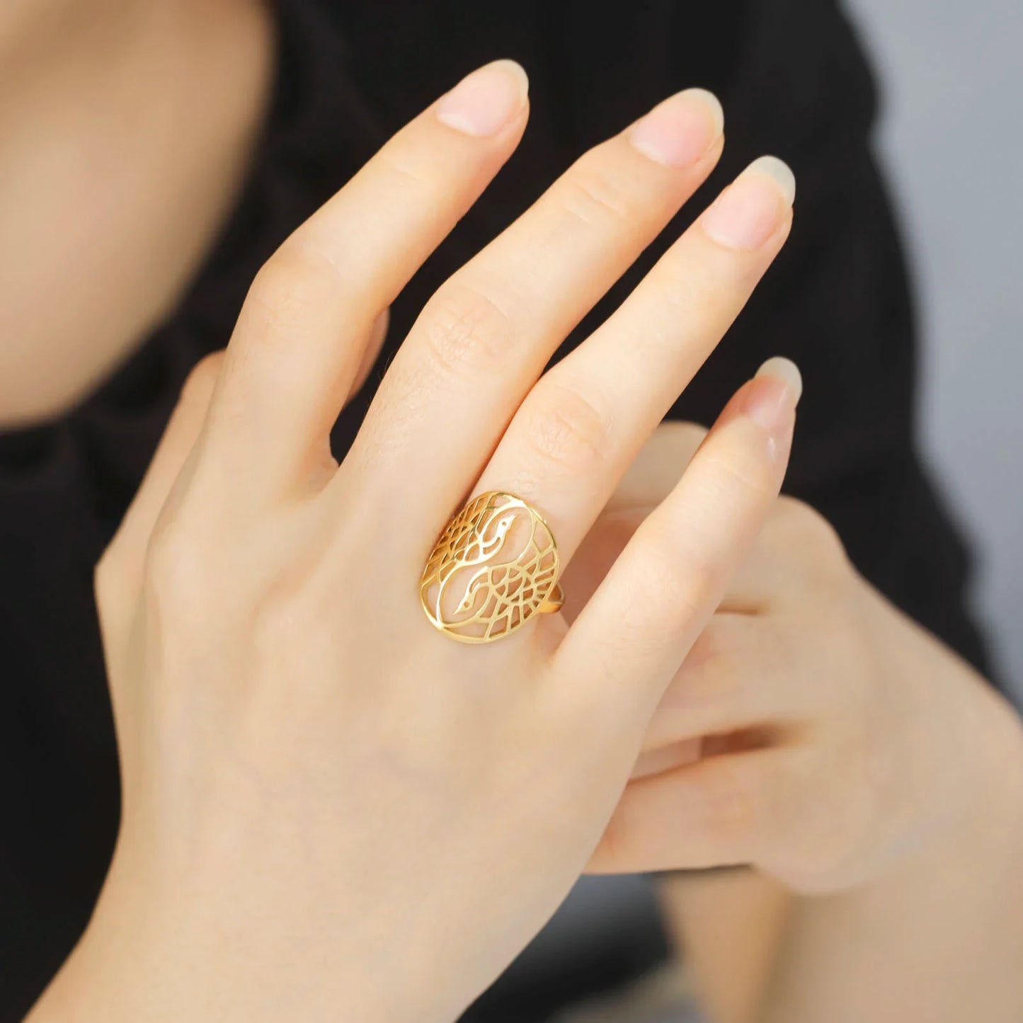 Find inner harmony with our Zen Birds Adjustable Ring. The two cranes, symbols of balance and grace, add a touch of elegance to this stainless steel masterpiece. Let the birds guide you towards a life of serenity and style.